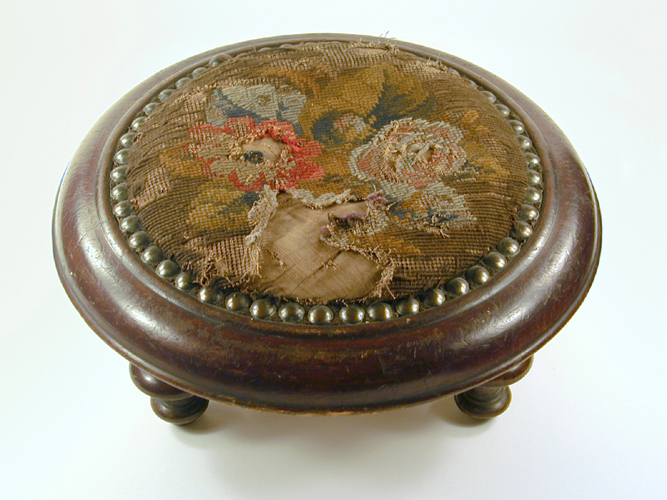 ![]() | HCA/1973/85 | Rund fodskammel af træ med broderi på sædet | Fodskamlen blev opkøbt efter digterens død ved auktionen over hans bohave. "... mine Been svigtede, jeg gleed paa de vaade ujevne Steen, og da jeg gik til Middag hos Fru Ørsted var jeg flere Gange ved at falde, saa at det generede mig at Folk saae min usikkre Gang; hos Fru Ørsted, lammedes et Par Gange min Tale; jeg har Fornemmelse af at mit Legemebliver med Eet affældig og dog er Sind og Tanke ungt". Dagbogen den 24. januar 1872 |