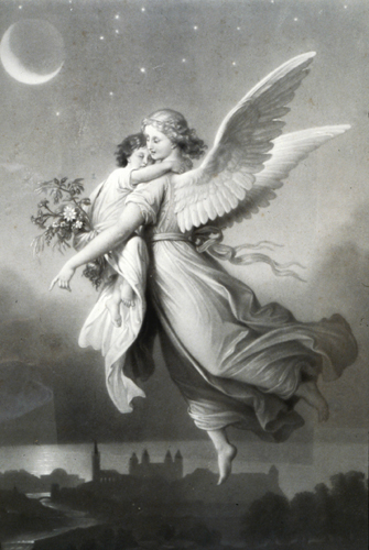 ![]() | HCA/1969/327 | "Engelen", litografisk stålstik efter tegning af den tyske maler Wilhelm von Kaulbach (1805-74) | H.C. Andersen modtog billedet med posten den 7. Januar 1861 fra W. Kaulbach. Eventyrillustrationen, som H.C. Andersen satte meget højt, havde han allerede set og beundret i München 1855. "Efter at have vandret vidt om i Byen kom jeg hjem og fandt en Indbydelse fra Forstanderen for det germaniske Musæum, Baron [Hans von Aufsess]; han havde læst mit Navn i Fremdenbuch og indbudt mig til Thee, Kaulbach og Datter kom, der var Maleren Eberhardt og en General med Frue og flere, Kaulbach bad mig læse og de fik 'Noget' og 'Hjertesorg'; Kaulbach udbrød i Beundring: hvad er De dog for en Digter altid ny og altid større, og hvilket Foredrag! han bad mig læse 'Englen', som han havde malet og som snart kom ud i Tryk, jeg skulde da faae et Exemplar." Dagbogen den 16. Juni 1860 |