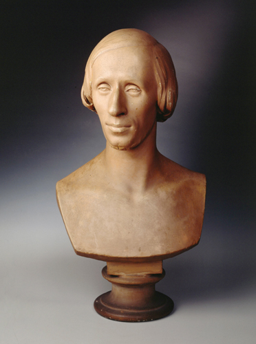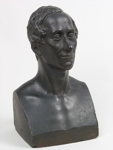![]() | HCA/X-B-1 | "H.C. Andersen". Buste af den engelske billedhugger Joseph Durham (1821-77). | H.C. Andersen stod model for billedhuggeren i juli 1847, under sin første Englandsrejse, og modtog fra kunstneren en afstøbning af sin og Jenny Linds buste året efter. "Den Billedhugger som i London har gjort Jenny Linds Buste har gjort min som Pendant, og den er liig i høi Grad, men saa forædlet, saa deilig! - Ja, min Gud, saaledes gad jeg nok see ud! saaledes bliver vist min Ansigt i en høiere Verden; et Exemplar vil komme til Kjøbenhavn." H.C. Andersen i brev til Henriette Wulff den 12. August 1847 |