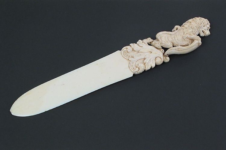 ![]() | HCA/XIII-67 | Papirkniv af elfenben | Papirkniv af elfenben. Skæftet forestiller en løve, der holder et skjold foran sig. Efter H.C. Andersen død har papirkniven tilhørt den norske komponist Edvard Grieg (1843-1907). "... læst hos Henriques for Grieg og hans unge Kone, jeg var lidt forkjølet; hun sang Mandens Musik til mine Digte: Hjertets Melodier og Vandring i Skoven, det var som friske Fugletoner". Dagbogen den 10. Maj 1870 |