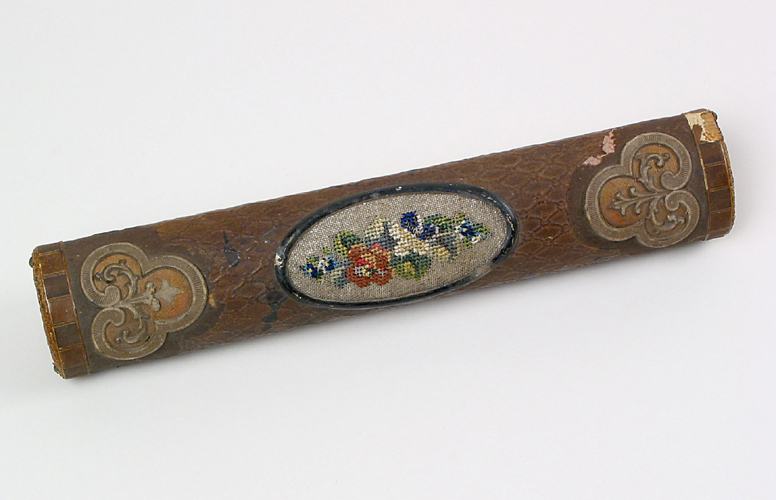 ![]() | HCA/1950/55 | Trækpapirrulle | Trækpapirrulle med pålagte ornamenter og indsat korsstingsbroderi. I hver ende kurvefletning. Rullen tilhørt søofficeren og tegneren Vilhelm Pedersen (1820-59), der var H.C. Andersens første illustrator. |