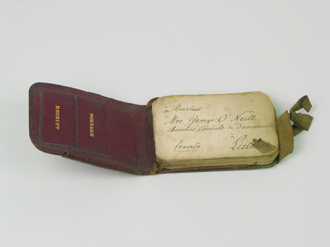 ![]() | HCA/XIII-43 | Adresse-notesbog | Læderindbundet adresse- og notesbog med guldsnit. I bogen har H.C. Andersen - og bekendte - anført en række adresser. |