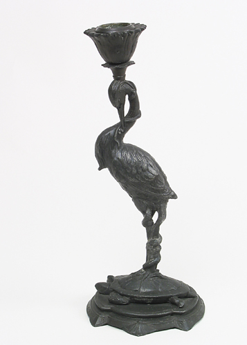 ![]() | HCA/XIII-37 | Jernlysestage | Lysestage af jern udformet som stork, hvis ben omslynges af en slange. "Forleden Middag var jeg hos Ten-Kates Svigersøn, hvor man havde samlet en stor Kreds, der talte, eller i det mindste forstod Dansk. Paa Bordet var en Kage, der da jeg elsker Storkene, var aldeles overfyldt af smaa Storke; midt paa den stod Fortuna med en Fane i hver Haand, en dansk og en hollandsk, paa den danske var skrevet H.C. Andersen og paa den hollandske: Ten-Kate ...". H.C. Andersen i brev til Henriette Collin den 20. februar 1866 |