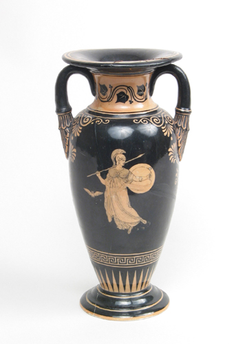 ![]() | HCA/1970/339 | Porcelænsvase i græsk stil | Vasen blev skænket til H.C. Andersen af arkitekt F. Meldahl (1827-1908) og hustru Amalie Meldal, f. Ræder (1838-1906). |