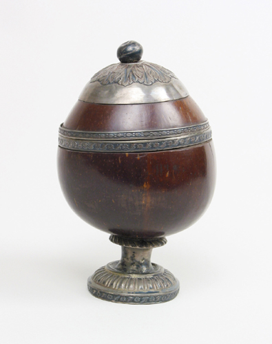 ![]() | HCA/XIII-109 | Bæger af kokosnød | Bægeret tilhørte H.C. Andersens nære ven digteren B.S. Ingemann (1789-1862). I juni 1863 modtog H.C. Andersen drikkebægeret af enkefruen Lucie Ingemann, f. Mandix (1792-1868). I bægerets bund fik H.C. Andersen påsat en sølvplade, hvorpå der står: "Dette Bæger af Cocosnød har tilhørt Digteren B. S. Ingemann og er efter hans Død foræret mig af Enken. H.C. Andersen." "Endnu har jeg at takke for den kjære Erindring om Ingemann, den smukke Pokal af Kokkosnød. Først for ganske nylig fik jeg den; fru Anholm, hvor jeg boer, havde alt i Sommer medens jeg var borte, modtaget den, gjemt den til mig og glemt det, til først nu længe efter Hjemkomsten; den staaer nu daglig for mig paa Bordet. Gud glæde og velsigne Dem". H.C. Andersen i brev til Lucie Ingemann den 16. december 1863 |