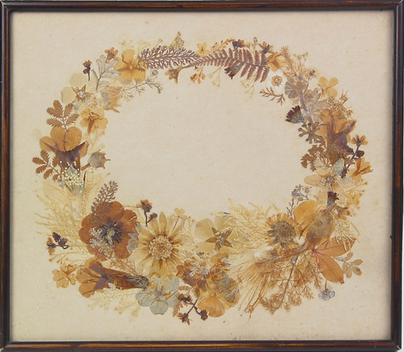 ![]() | HCA/XVI-2 | Krans af pressede blomster | Den indrammede krans af pressede blomster, som stod på H.C. Andersens skrivebord, er muligvis skænket digteren af Dorothea Melchior (1823-85), der delte hans store lidenskab for blomster. "Naar jeg i Haven eller Skoven seer en eller anden aparte lille Blomst putter jeg den i en Bog, og presser den; jeg har saaledes en halv Snees Blomster som De maaskee kan benytte til Deres Krandse". H.C. Andersen i brev til Dorothea Melchior den 26. august 1872 |