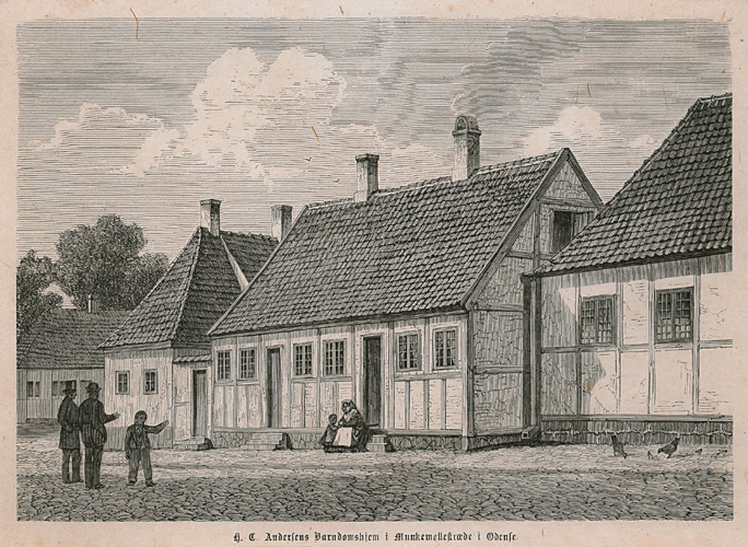 ![]() | HCA/XII-20 | "H.C. Andersens Barndomshjem i Munkemøllestræde", træsnit i Illustreret Tidende den 5. januar 1868. | I anledning af H.C. Andersens æresborgerskab i Odense den 6. december 1867 bragte Illustreret Tidende en artikel om digterens barndom i Odense. Skønt artiklen skriver om digteren i 3. person, var artiklen forfattet af H.C. Andersen selv. "Dagen var smuk og solklar; jeg saae i Dags Telegraphen at det var Paludan Müllers Fødselsdag (ogsaa Dickens) gik til ham og gratulerede, han tog mig om Halsen og sagde at vi bleve Venner her og ind i Evigheden; han talte med Interesses om Billedet i Illustrerede Tidende om mit Barndomshjem og jeg bragte ham det med en Green af min Epheuranke, hans Kone havde bragt ham Blomster, jeg stak Ranken ned mellem de foraarsduftende Violer, og sagde at jeg var forvisset om at den vilde groe." Dagbogen den 7. februar 1868 |