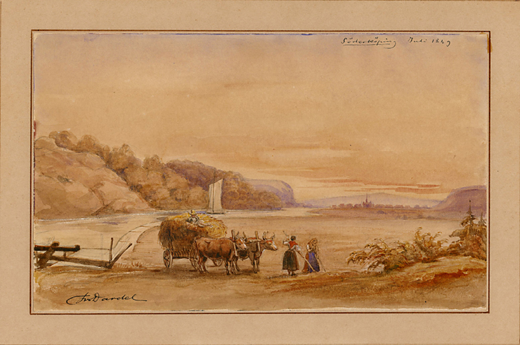 ![]() | HCA/XV-3 | "Söderköping". Akvarel af den svenske illustrator Fritz von Dardel (1817-1901), juli 1849. | H.C. Andersen modtog akvarellen under sit andet Sverigesophold i 1849. "Jeg kjørte med Grev Hamilton [fra herregården Blomberg] ½11 ned om Broderens Eiendom til Hellekis, hvor Lieutenant Ramze særdeles glad tog mod mig, det er et stort Sted, her kom Dardel og bragte mig to af sine gode Tegninger. Stor Middag ..." Dagbogen 2. august 1849 |