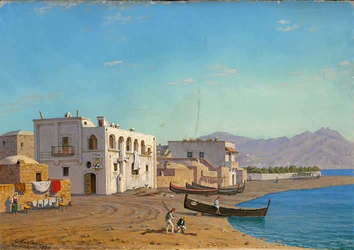 ![]() | HCA/XV-4 | "Torre del Annunziata", maleri af den østrigske maler Carl Georg Enslen (1792-1866), 1855 | Maleriet fra 1855 skænkede maleren litteraten og oversætteren Theodor Schorn (1796-1879), der hørte til Ingemanns vennekreds. H.C. Andersen har givetvis sat pris på maleriet, da han selv i marts 1834 havde oplevet Torre del Annunziata nær Pompeji. |