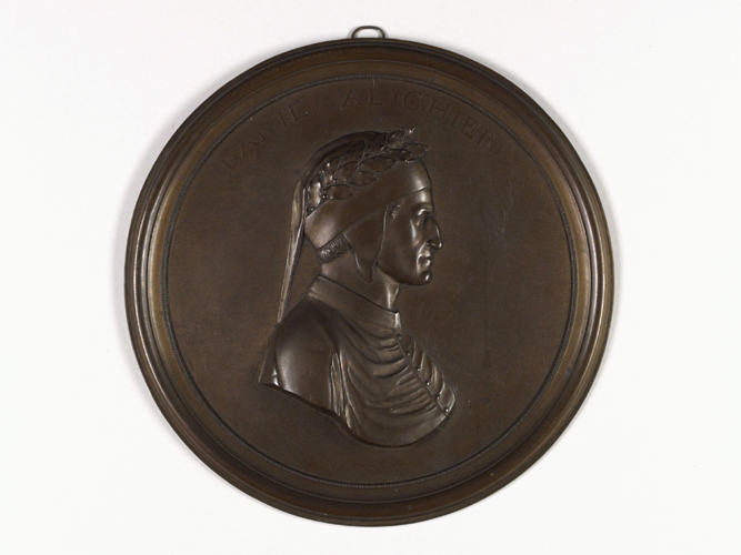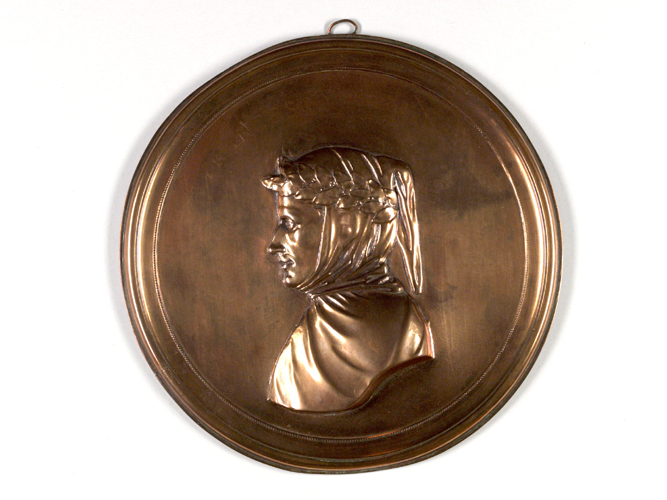 ![]() | HCA/XIII-63 | Kobbermedaljon af den italienske digter Dante Alighieri (1265-1321) | Kobbermedaljonen forestiller Dante Alighieri, italiensk forfatter (1265-1321) og var ophængt over H.C. Andersens skrivebord i Nyhavn 18. "Det er her i Nærheden, i Bjerget Paderno, den saakaldte bononiske Steen findes, hvilken har den særegne Egenskab, at den indsuger Solens Straaler og derpaa lyser i Mørke. - Jeg tænkte derpaa, da jeg i Sollys saae den store By og mit Øie faldt paa det skjæve Taarn! see det er ogsaa en Steen-Masse, der lyser, tænkte jeg, men Lyset har denne faaet fra Dantes Divina comedia". En Digters Bazar [1842] |