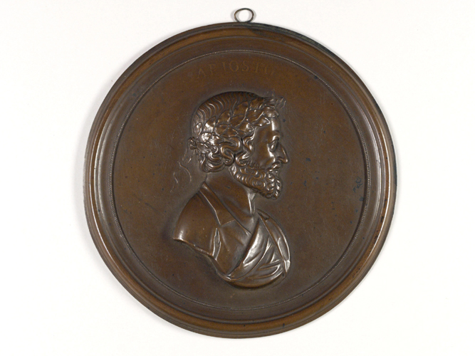 ![]() | HCA/1957/16 | Medaljon af den italienske digter Lodovico Ariosto (1474-1533) | Medaljonen forestiler den italienske digter Lodovico Ariosto (1474-1533) og var ophængt over H.C. Andersens skrivebord i Nyhavn 18. "Udenfor [Kirken Sanct Justiniana i Padua] er en stor Plads med en Ø, hvor om staae mange berømte Mænds Statuer, jeg fandt Ariosts". Dagbogen den 19. April 1834 |