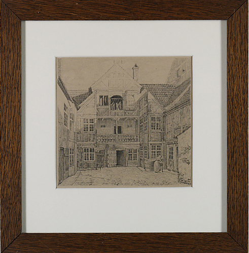 ![]() | HCA/1985/301 | "Den collinske Gård", tegning af arkitekturmaleren Heinrich Hansen (1821-91) | Familien Collin boede indtil 1838 i en gammel bindingsværksgård i Bredgade (nu nr. 2) tæt på Det Kgl. Teater. Her - i "Hjemmets Hjem", som H.C. Andersen kaldte den collinske gård, havde han sin daglige gang. "Da ... det nuværende Kongens Nytorv var aaben Mark, laae der, henimod St. Anna Kapel, et Landsted, hvor den spanske Minister boede om Sommeren; det var dette Huus, der siden længe, til for faa Aar siden, laae skjævt og kantet, en Bindingsværks Bygning i den anseelige Gade; en gammeldags Træ-Altan førte op til Indgangen i første Stokværk; det indre, snevre Gaardsrum havde sit kluntede Trægalleri under det fremspringende Tag, men ud til Gaden selv bredte et gammelt Lindetræ sine Grene hen over Gaarden mod den spidse Gavl. Dette Huus skulde blive mig et forældreligt Hjem, og hvo dvæler ikke gjerne ved at skildre Hjemmet?" Mit Livs Eventyr [1855] |