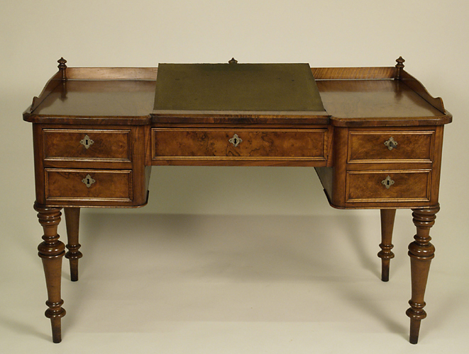 ![]() | HCA/XIII-10 | Skrivebord i nøddetræ | H.C. Andersens skrivebord. "Da jeg kom ind i Stuen stod der fra Fru Melchior og Fru Henriques til mig et nøddetræes Skrivebord" Dagbogen 2. april 1867 |