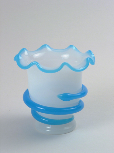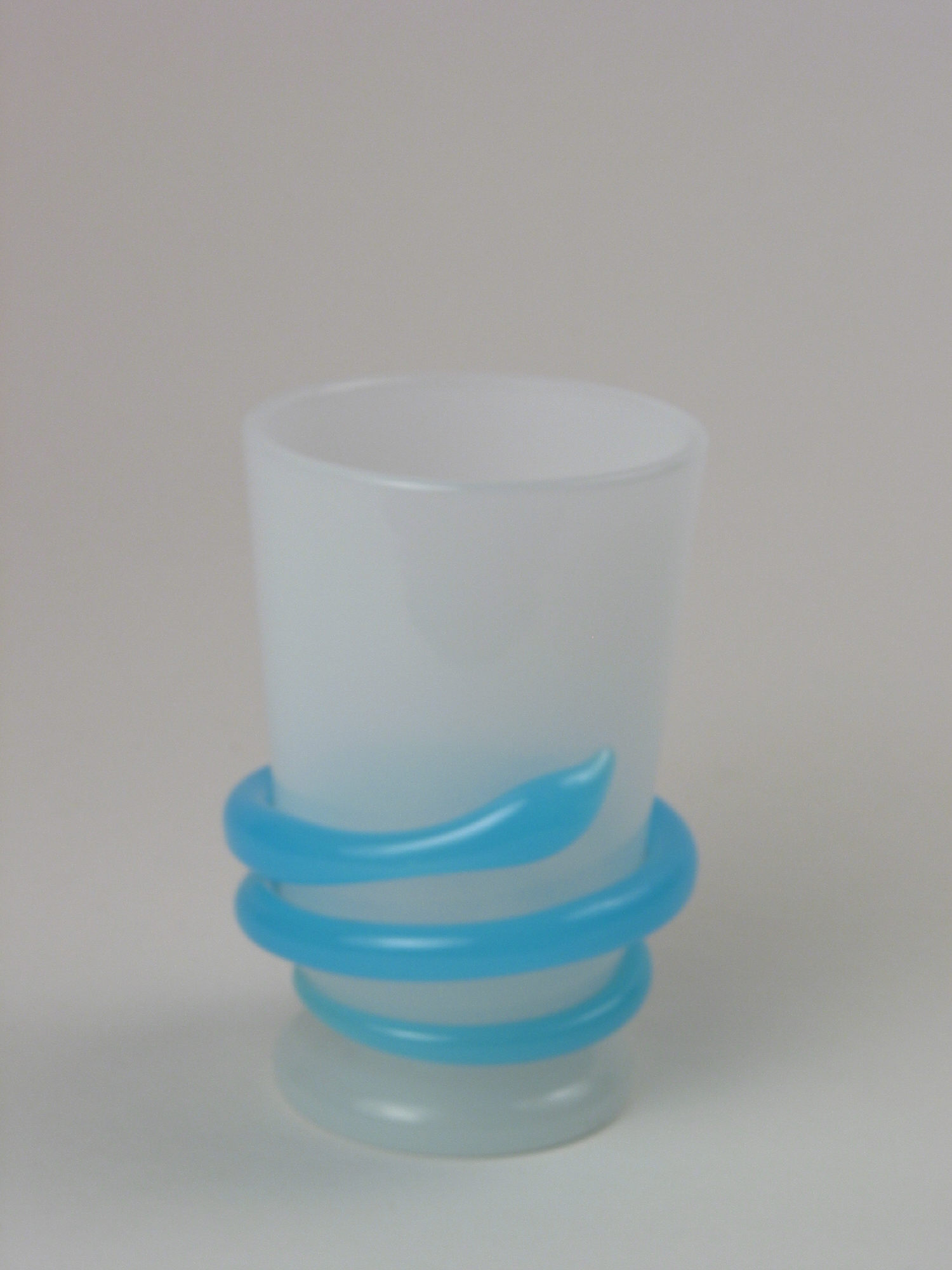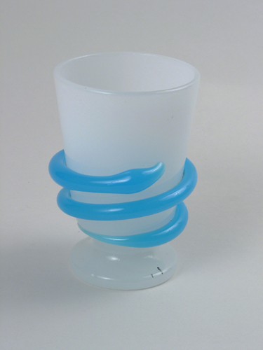 ![]() | HCA/XIII-105-0004 | Mælkehvidt glas med blå slangeformet glasdekoration | Efter H.C. Andersens død overgik glasset til komponisten J.P.E. Hartmanns søn, komponisten Emil Hartmann (1836-98). |