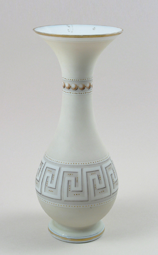 ![]() | HCA/XIII-98-A | Hvid porcelænsvase med a la grecque bort | Efter H.C. Andersens død var vasen i Frk Nathalie Seegers (død 1917) eje. Hun, der tilhørte den collinske kreds, førte tit tilsyn med digterens lejlighed, når han var på rejse. |
