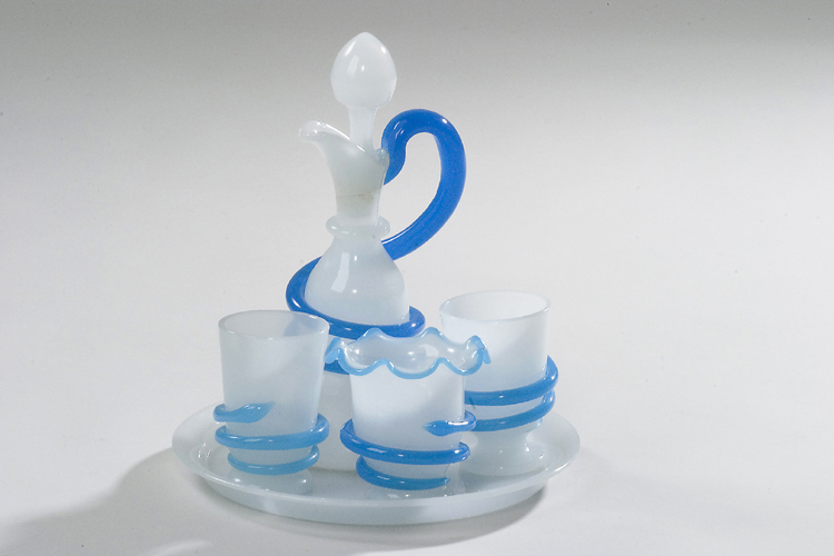 ![]() | HCA/XIII-105-0002 | Mælkehvid glaskaraffel med blå slangeformet glasdekoration | Efter H.C. Andersens død overgik glasset til komponisten J.P.E. Hartmanns søn, komponisten Emil Hartmann (1836-98). |