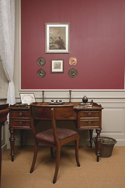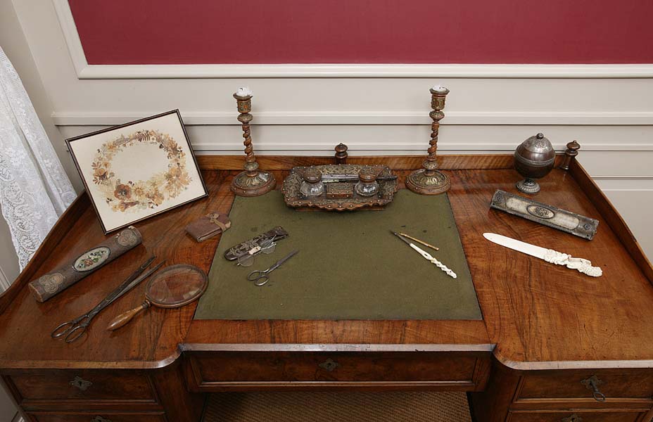 ![]() | HCA/XIII-10 | Skrivebord i nøddetræ | H.C. Andersens skrivebord. "Da jeg kom ind i Stuen stod der fra Fru Melchior og Fru Henriques til mig et nøddetræes Skrivebord" Dagbogen 2. april 1867 |